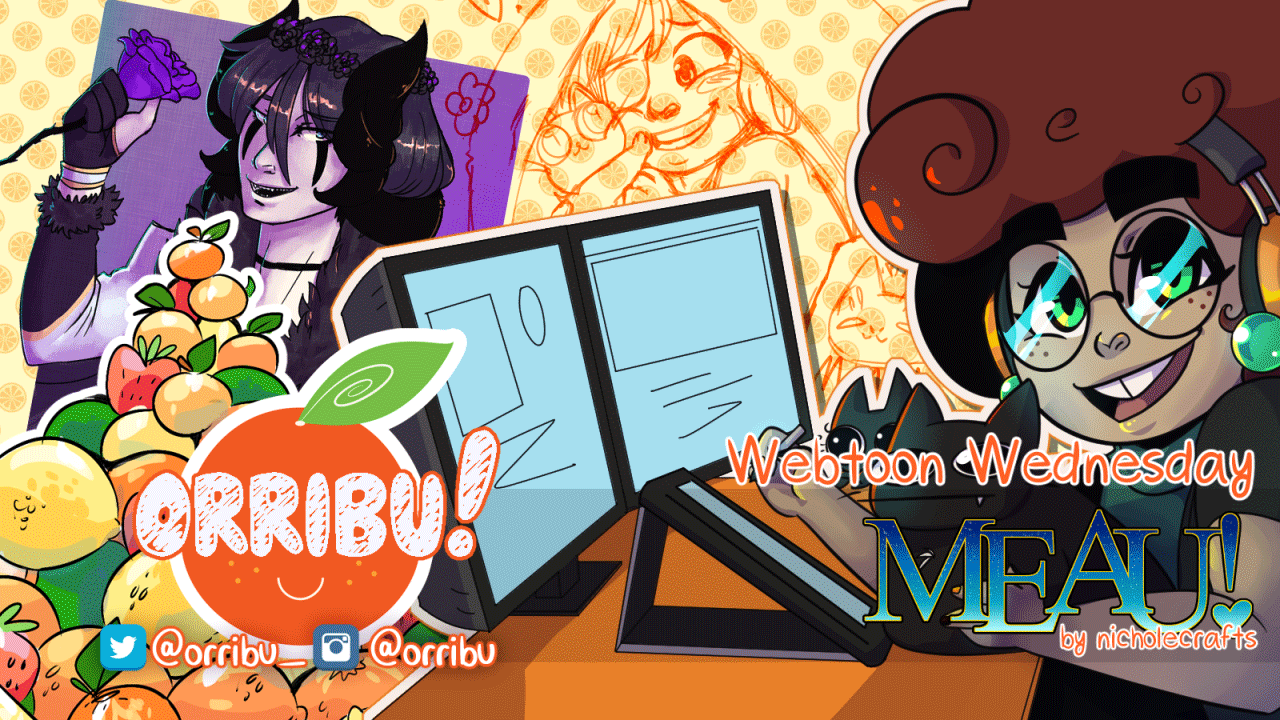 On the last Wednesday (or so) of every month, Head Baker orribu gathers a handful of comic artists and enthusiasts to hyperfocus on and celebrate a webcomic with a live read, polls, art, and a casual little conversation. Each event is split in to four parts, and by the end of the night, artists and readers alike are invigorated and motivated to share their love and their visions with the world!